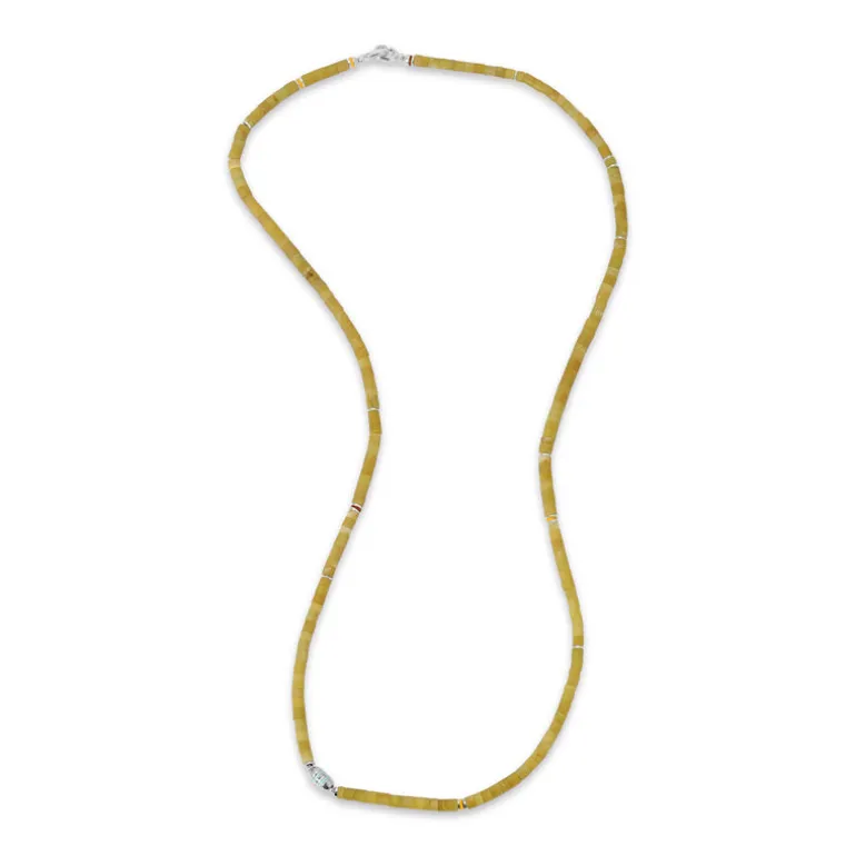The Cherish, a beautiful piece that provides a subtle addition of color and be worn as a necklace or bracelet. Made with fine beige-pattern Afghan Jade, Sterling Silver, it can be paired with any of your favorite MAOR Necklaces or as a base for your stack.