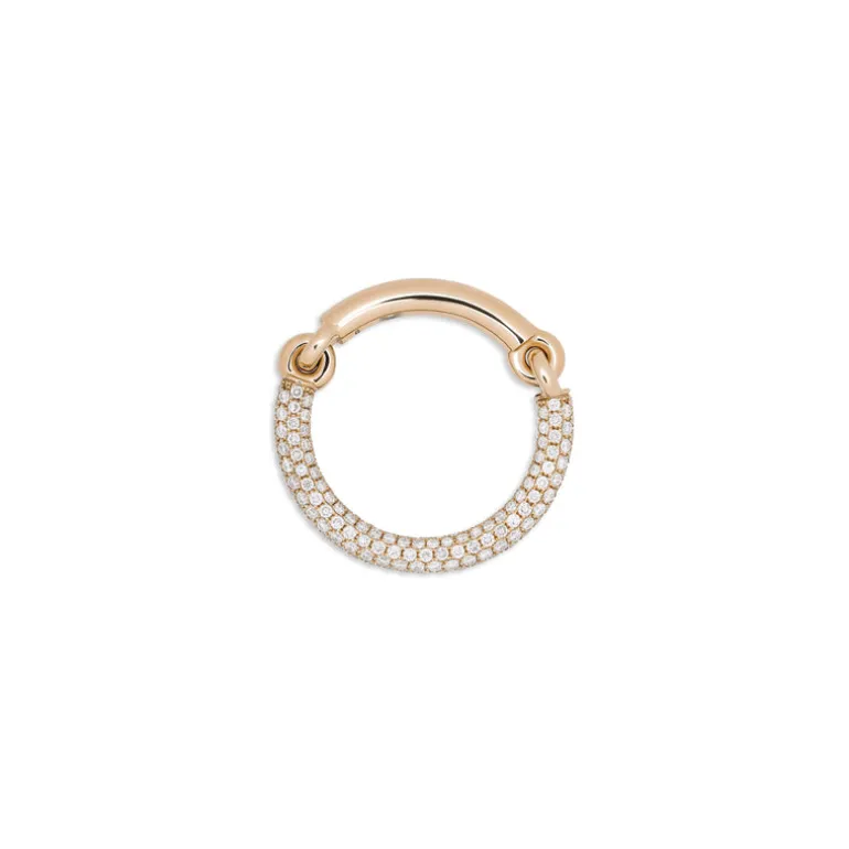 Embodying constant movement within perfect balance, the single white diamond honeycomb 2/3 pave bar is uniquely placed with a link of solid 18k yellow gold. Wear this Equinox as a statement piece or in a stack of complementary rings.