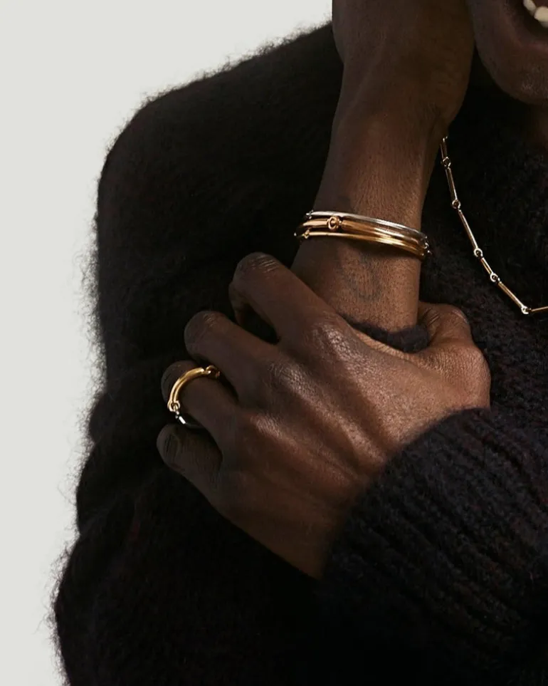 Forward-thinking yet instantly classic, the two tone Equinox ring breaks the conventional mold by exploring the pairing of both 18k white and yellow gold. With its uniquely placed link, wear this Equinox as a statement piece or in a stack of complementary rings.