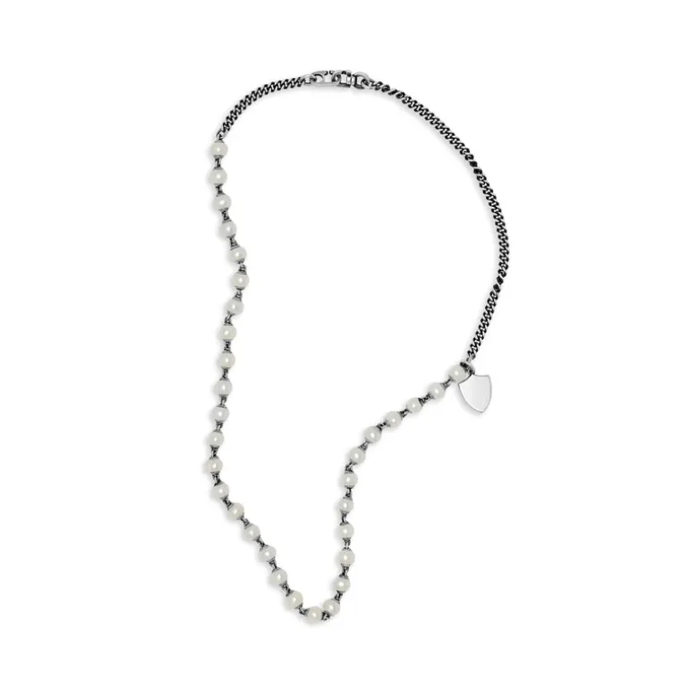 Experience elegance and versatility with the Mondi Necklace. Crafted from sterling silver and adorned with lustrous white pearls, this necklace is a timeless addition to any outfit. The high-quality materials and expert craftsmanship make this piece a valuable investment for any jewelry collection.