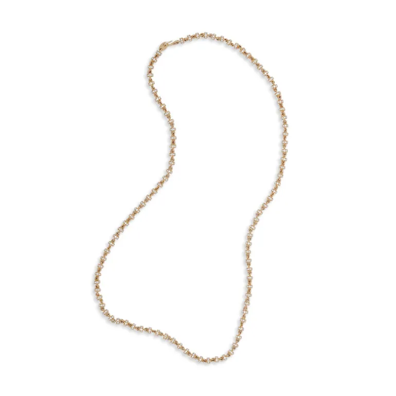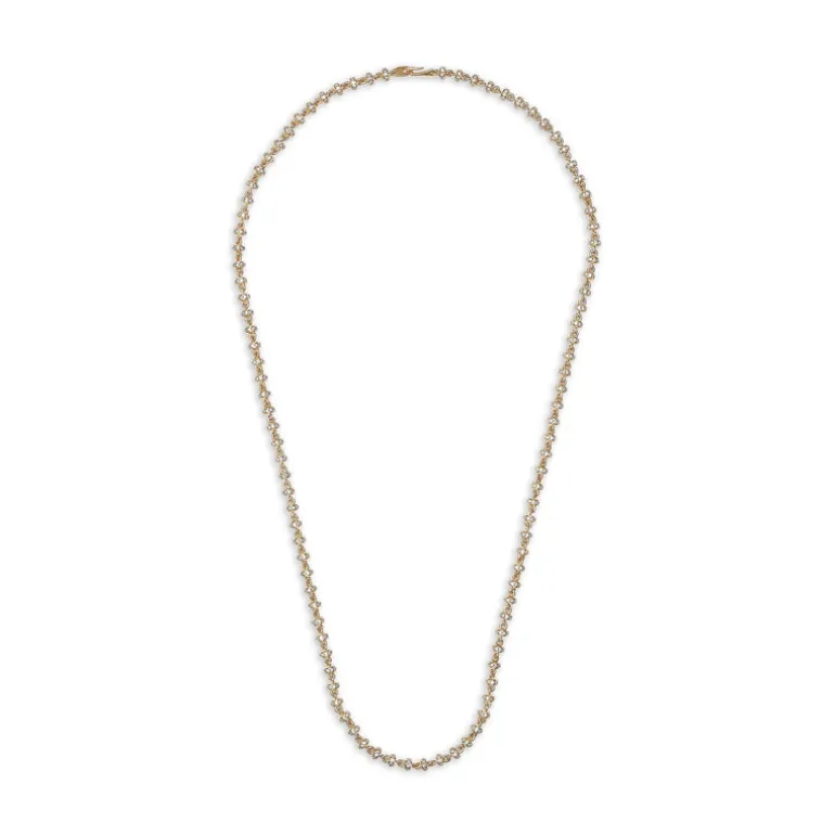 Expertly crafted with 18k yellow gold, the Omni 18″ Necklace features a dazzling 4mm full pave design. Elevate any outfit with this luxurious and eye-catching piece.