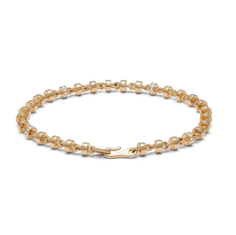 The Omni design is the true definition of timeless. The uniquely balanced sequence of solid 18k yellow gold links accented with pave white diamonds makes this a foundational piece for every collector. 4mm is the thinnest of three choices.