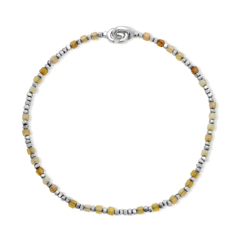 Crafted with 925 sterling silver and a stunning yellow opal, the Percep Bracelet brings elegance and sophistication to any outfit. Its handcrafted design and kissing closure make it both stylish and easy to wear. Elevate your look with this timeless piece.