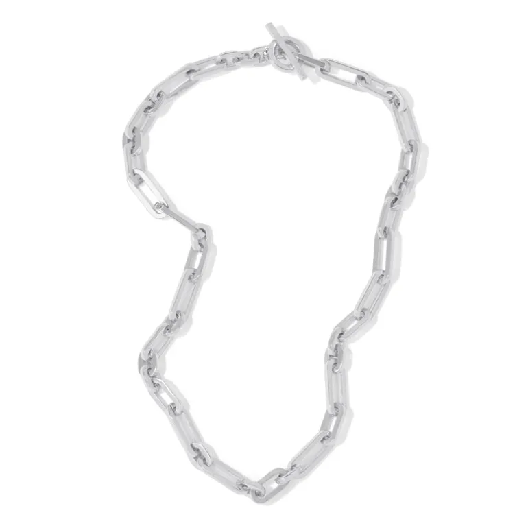 Embracing the design of the interlocking links of varying sizes, the solid 925 sterling silver pattern of the Trio Linka necklace is a bold statement piece. We suggest to wear it solo or stacked with other MAOR short necklaces for a modern and edgy look.
