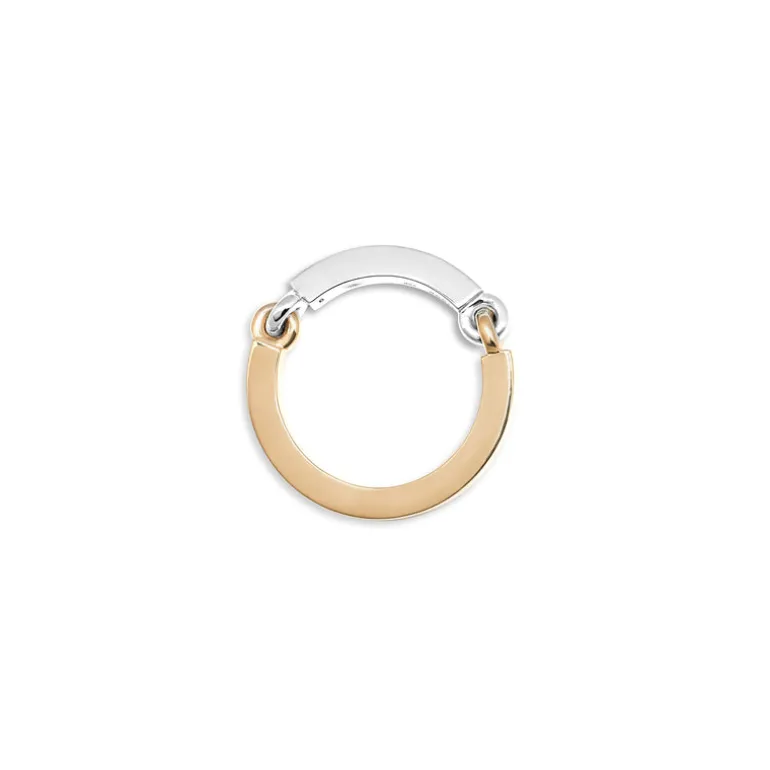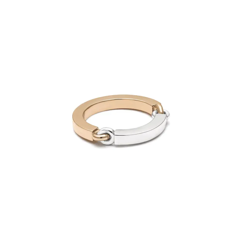 Forward-thinking yet instantly classic, the mixed metal Aphelion ring breaks the conventional mold by exploring the pairing of both solid 18k yellow and white gold. Wear the Aphelion as a statement piece or in a stack of complementary rings.