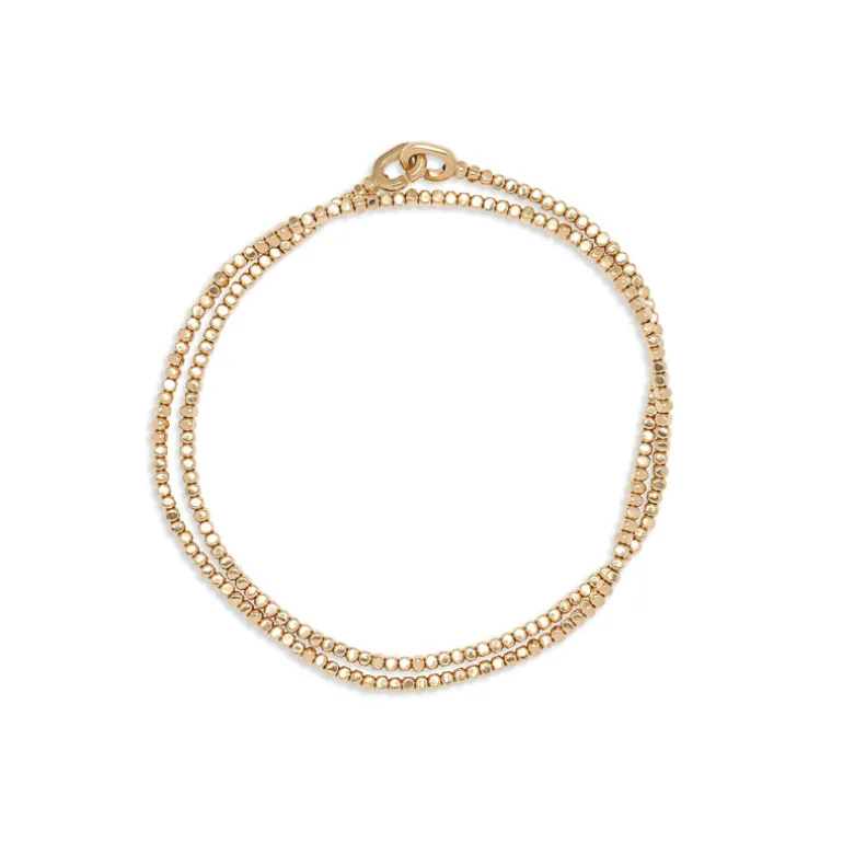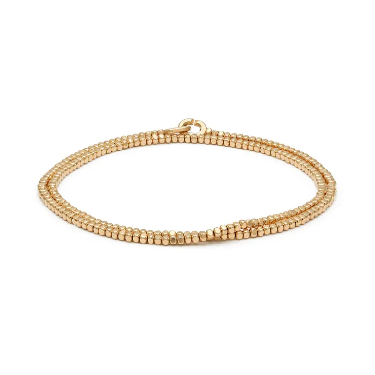 Raw and yet refined with 18k yellow gold corner-less beads, this is a foundational piece for every collector. Whether worn on as a two wrap, stacked next to other MAOR bracelets or worn as a choker, the Noix bracelet is a beautiful addition to your collection.