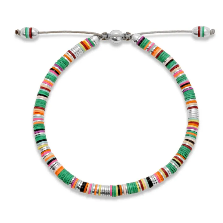 Expertly crafted with 925 sterling silver and adorned with vibrant green African trade beads, the Malli Bracelet is a stunning addition to any jewelry collection. Its unique pattern and high-quality materials make it a stylish and enduring accessory. Elevate any outfit with this elegant and eye-catching bracelet.