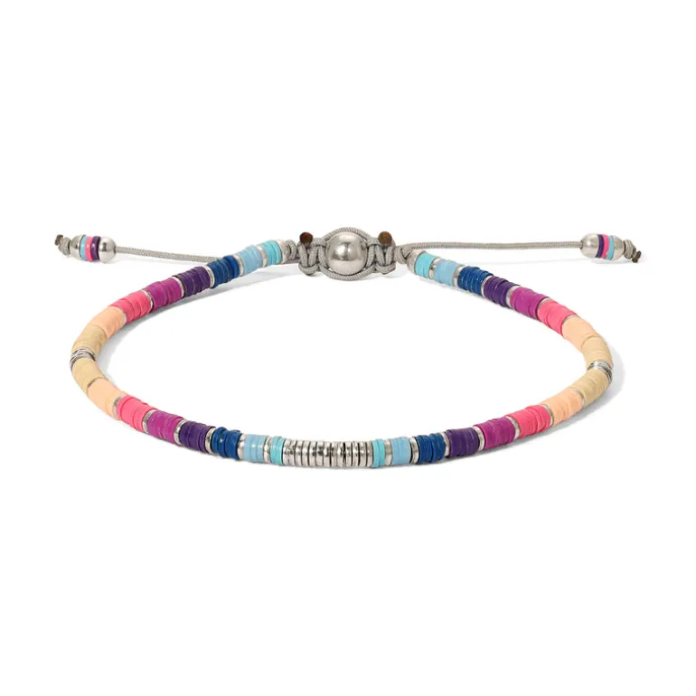 The mini Rizon, a foundation piece that provides an addition of color to any stack, consists of 925 sterling silver discs and colorful African trade beads into a beautiful pattern. Wear paired with your favorite MAOR bracelets.
