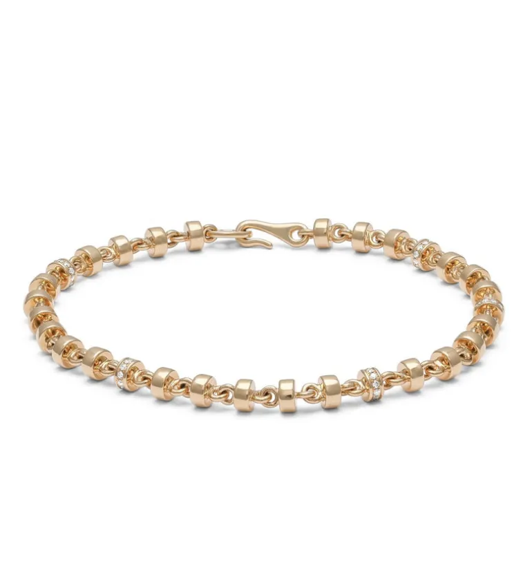 The Omni design is the true definition of timeless. The uniquely balanced sequence of solid 18k yellow gold links accented with pave white diamonds makes this a foundational piece for every collector. 4mm is the thinnest of three choices.