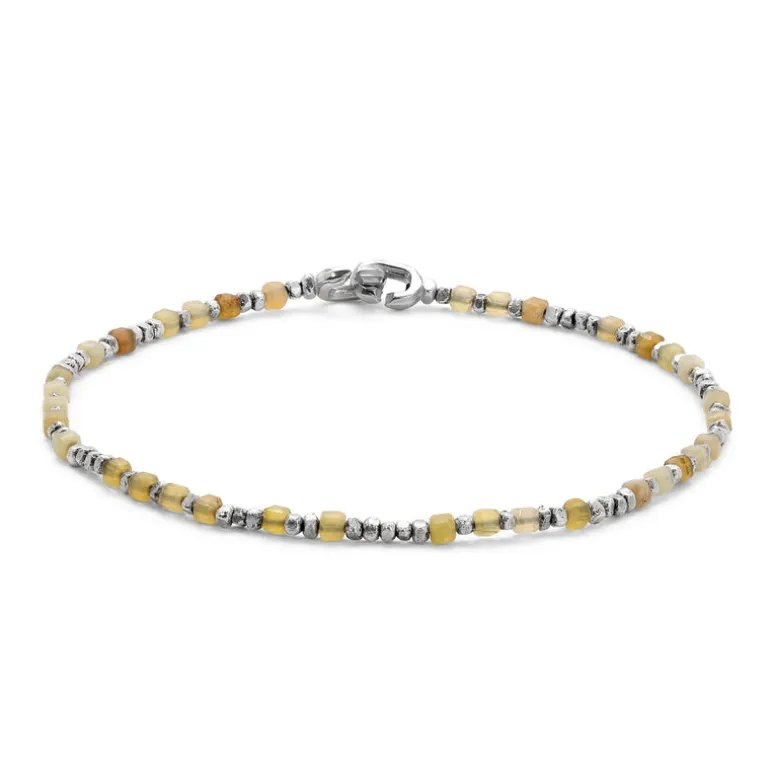 Crafted with 925 sterling silver and a stunning yellow opal, the Percep Bracelet brings elegance and sophistication to any outfit. Its handcrafted design and kissing closure make it both stylish and easy to wear. Elevate your look with this timeless piece.