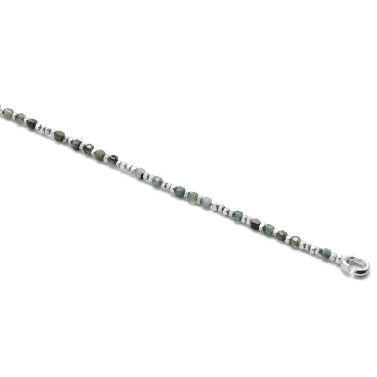 Expertly handcrafted with 925 sterling silver, the Percep Necklace/Bracelet is a versatile accessory that can be worn as a necklace or a bracelet. The stunning green emerald stone adds a touch of natural beauty to the elegant design. The easy-to-use kissing closure ensures a secure fit every time.