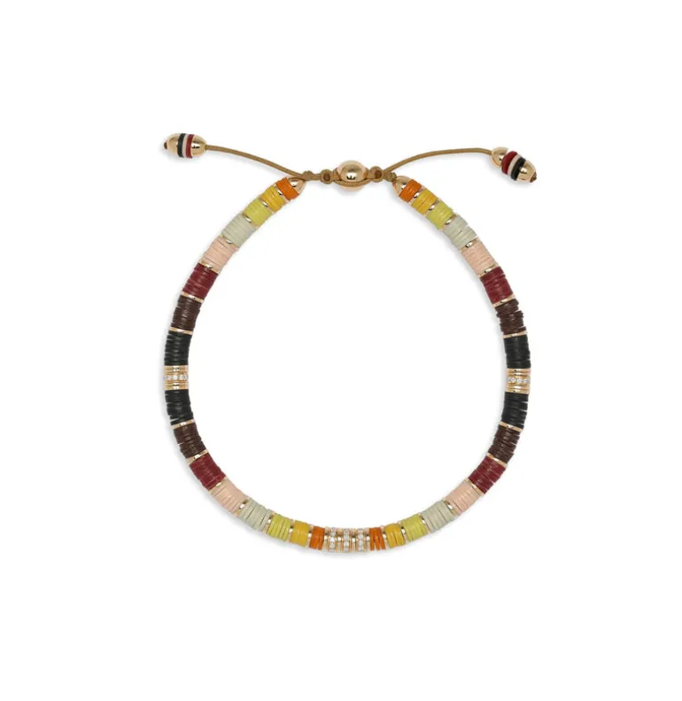 The Rizon, a foundation piece from the designer, provides an addition of color to any stack. Made using 18k yellow gold discs, white diamond pave and authentic African trade beads, which in small tribes through out the continent are used as currency, and based on color, signify emotions. Wear paired with your favorite MAOR bracelets.