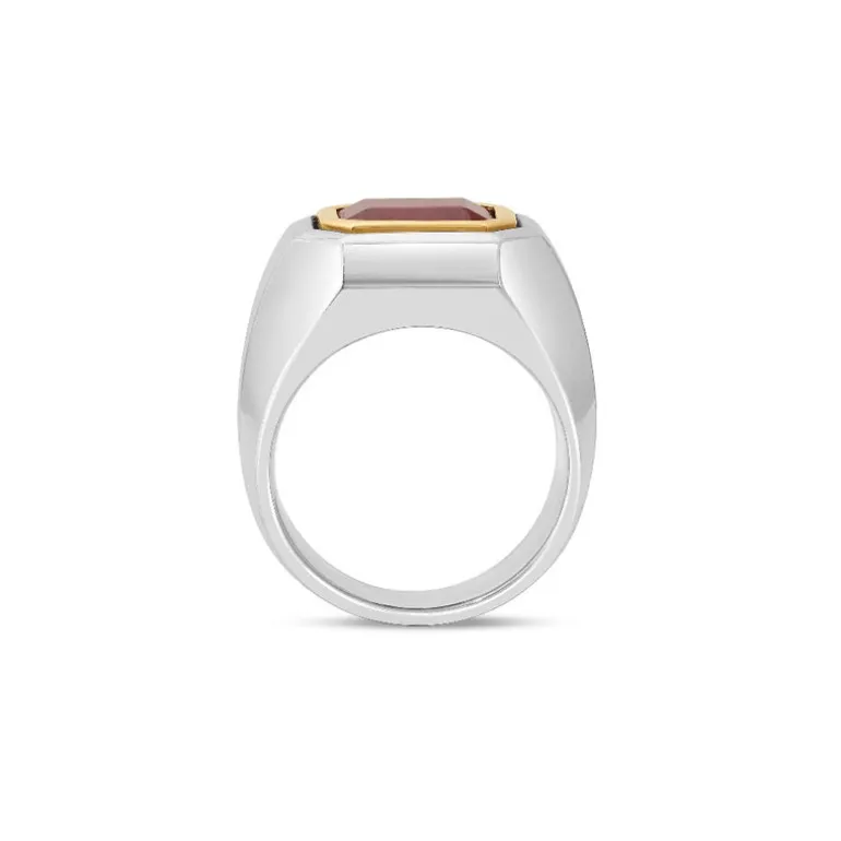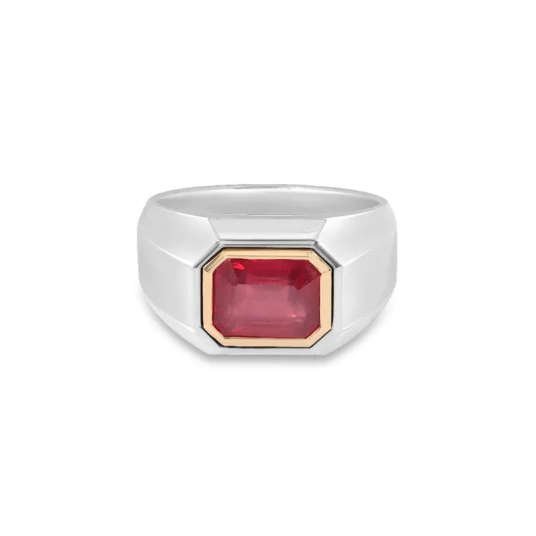 Forward-thinking yet instantly classic, the Solitaire ring breaks the conventional mold by exploring the pairing of both 925 sterling silver outer mass with 18k yellow gold surrounding the rubylite precious stone. A great statement, wear this solitaire ring in any of the main fingers or paired.